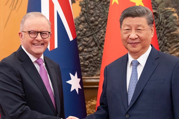 Anthony Albanese is in China chasing trade deals as Australia undertakes its largest ever military exercise aimed at countering Chinese aggression.
